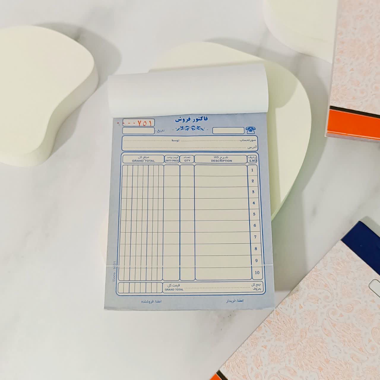 فاکتور فروش ۱۰۰ برگ ابعاد ۱۱×۱۷۲۹٬۰۰۰ تومان