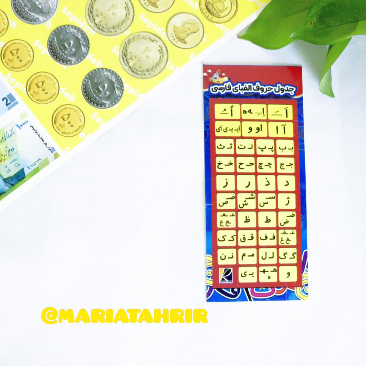 پول و سکه آموزشی کلاس دوم، دارای جدول حروف الفبا سایز ۳۵×۲۵